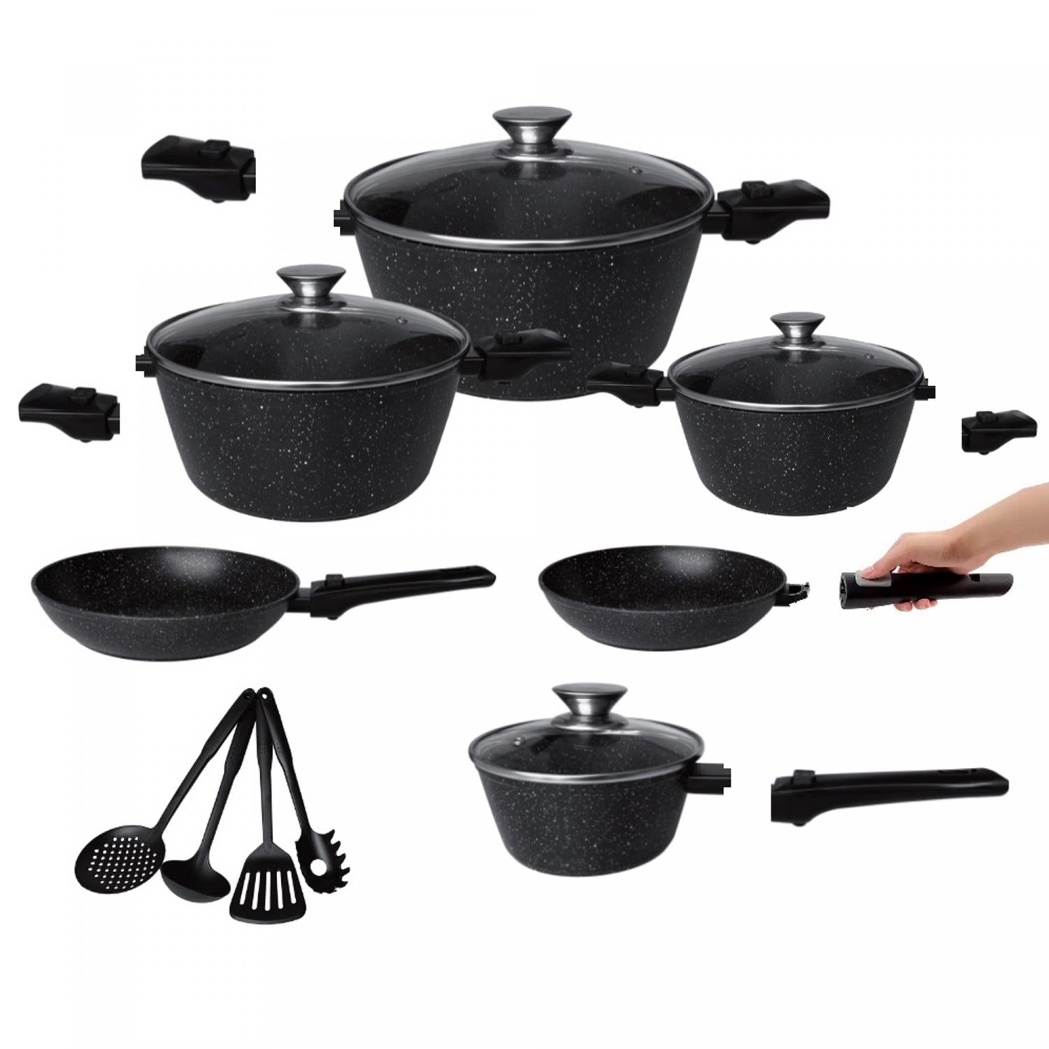Cheffinger CF-FAD1010: 14 Pieces XXL Cooking Pot Set with Removable Handles + 4 Laddle
