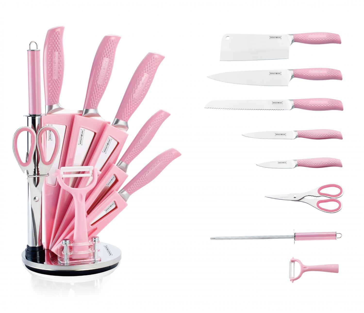 Royalty Line RL-KSS540: 9 Piece Knife Set Block with Rotating Holder – Pink